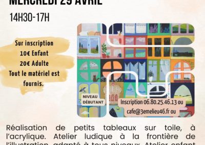 Nombre de places limité, inscription et information au 06 80 25 46 13 ou à cafe@3emelieu46.fr