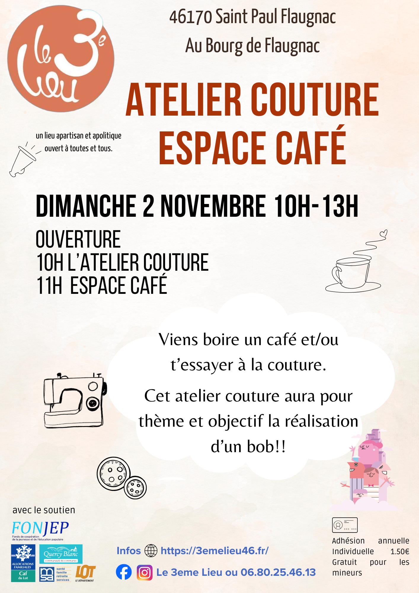 Nombre de places limité, inscription au 06 80 25 46 13 ou à cafe@3emelieu46.fr