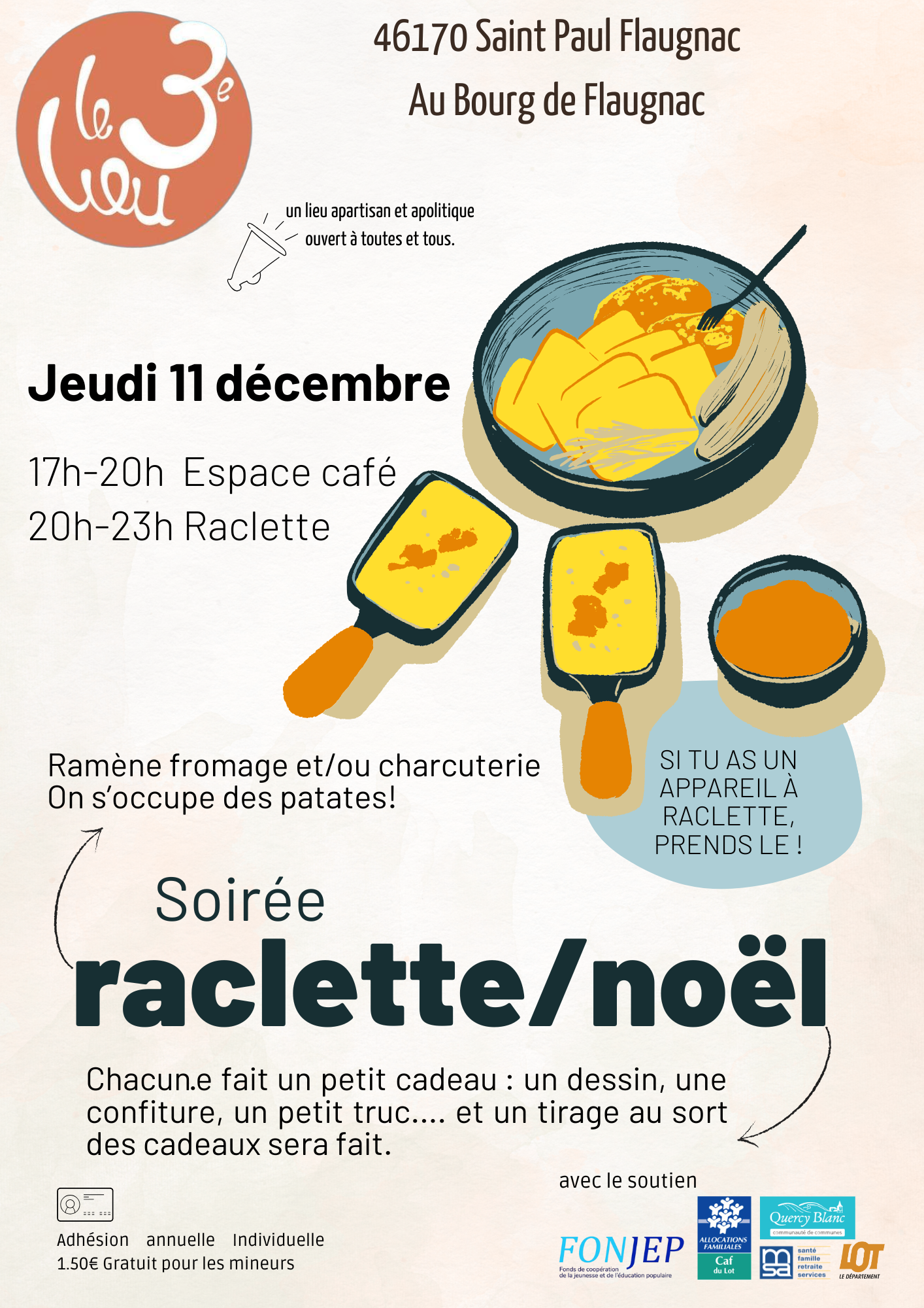 Ouvert : à partir de 17h: espace café et à partir de 20h: raclette