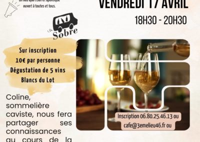 Pensez à vous inscrire au 06 80 25 46 13 ou par mail à cafe@3emelieu46.fr