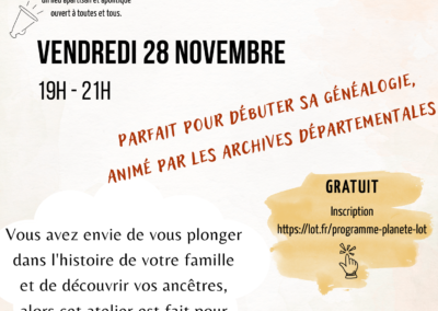 Vous avez envie de vous plonger dans l’histoire de votre famille et de découvrir vos ancêtres, alors cet atelier est fait pour vous!
